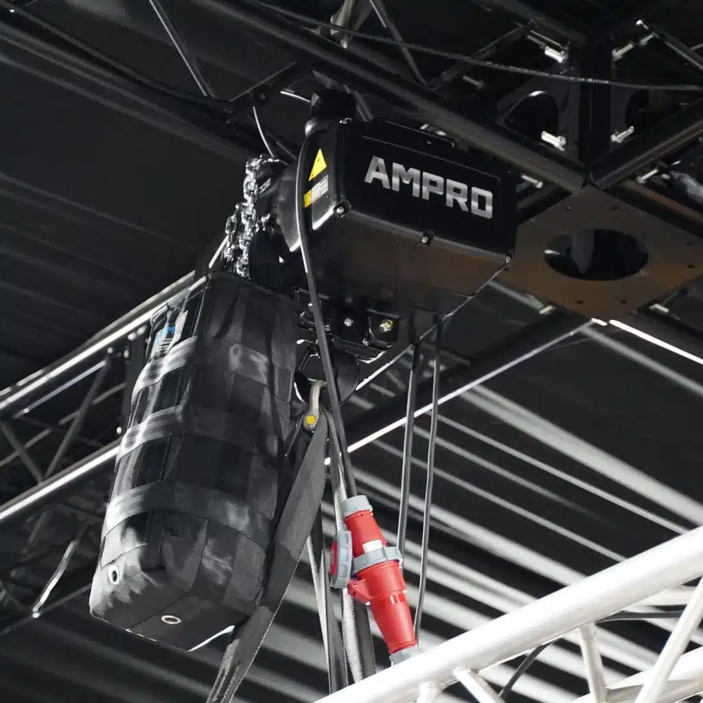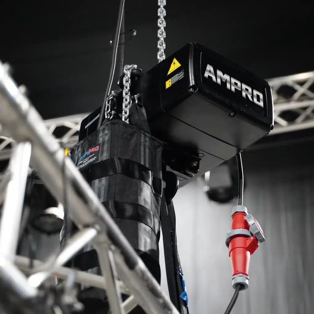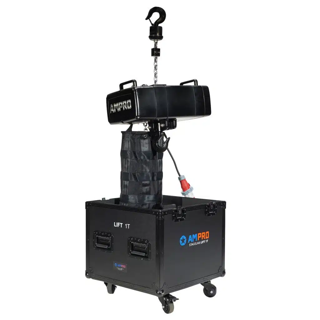 El motor eléctrico Lift 1T de AMPRO ha sido diseñado para ofrecer total seguridad, protección y automatización en todas las etapas del montaje. Equipado con un silencioso motor eléctrico de 3 fases, sistema de doble freno y embrague para protección en caso de sobrecarga, Lift 1T es la herramienta perfecta a la hora de pensar y ejecutar sistemas de rigging profesional.