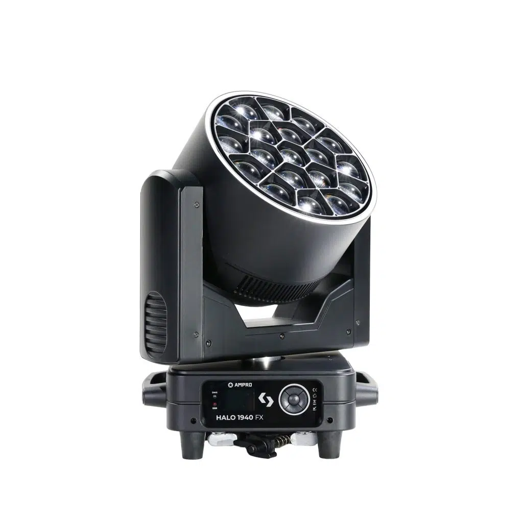 El Tecshow Lighting HALO 1940 FX KIT cuenta con dos unidades de HALO 1940 FX en flightcase, diseñado para aplicaciones profesionales que requieren versatilidad, potencia y efectos visuales impactantes. Equipado con 19 LEDs RGBW de 40 W cada uno, HALO 1940 FX entrega un zoom motorizado de 4,5° a 45°, control por pixel y efectos caleidoscópicos rotativos en ambas direcciones. Su perímetro incorpora un anillo LED RGB para mayores posibilidades de programación y visuales. Compacto, de bajo peso y con amplio rango de movimiento HALO 1940 FX KIT es una herramienta ideal para shows en vivo, eventos, teatros o instalaciones.