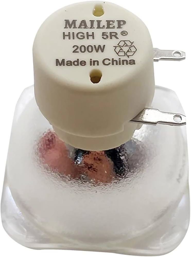 La Lámpara Mailep 5R es una bombilla de descarga de alta intensidad (también conocida como lámpara HID o de haz beam) diseñada para cabezales móviles en sistemas de iluminación profesional. Fabricada por Mailep, esta lámpara de 200W genera un haz de luz potente y concentrado, ideal para efectos dinámicos en escenarios, DJ sets, conciertos, discotecas y eventos en vivo. Su clasificación «5R» se refiere a su tamaño compacto (diámetro de 5 cm) y alto rendimiento lumínico, equivalente a modelos como la Philips MSD Platinum 5R o YODN 5R. Produce un flujo luminoso de hasta 7950 lúmenes con una temperatura de color fría de 8000K, permitiendo proyecciones aéreas nítidas, patrones de gobos y efectos prismáticos. Es compatible con cabezales móviles DMX que soportan lámparas 5R, como los modelos Beam 5R genéricos o híbridos, y destaca por su durabilidad, eficiencia energética y bajo mantenimiento. Su diseño ignífugo y con protección térmica la hace segura para uso intensivo, aunque se recomienda reemplazarla cada 1500-2000 horas para óptimo rendimiento.
